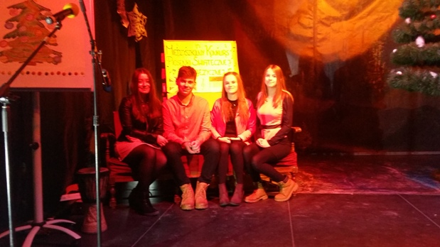 Dnia 11.01.2017 uczennice naszego gimnazjum Daria Franczyk (kl IIa) i Natalia Szczepaniak (kl IIa) wzięły po raz pierwszy udział w Międzyszkolnym Konkursie Piosenki Świątecznej Obcojęzycznej „Christmaslieder & Weihnachtssongs”, przygotowanego przez Publiczne Gimnazjum im. ks. prof. Józefa Tischnera w Szczawnicy. Konkurs odbył się w budynku Miejskiego Ośrodka Kultury w sali kinowej. W konkursie wzięło udział 6 szkół z terenu powiatu nowotarskiego. Każdy uczestnik zaprezentował dwie piosenki świąteczne - jedną w języku niemieckim i jedną w języku angielskim. Zadanie nie należało więc do najłatwiejszych. Nasze uczennice wykazały się dużą pomysłowością i talentem muzycznym. Daria zdobyła III miejsce, a Natalia 5 miejsce. Gratulujemy i życzymy sukcesów w przyszłym roku!